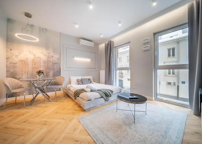 Dit appartement is op rijafstand van 15 minuten vanaf het Museum Opstand van Warschau te vinden. De Dierentuin van Warschau ligt op 25 minuten wandelen van het 1-slaapkamer appartement.